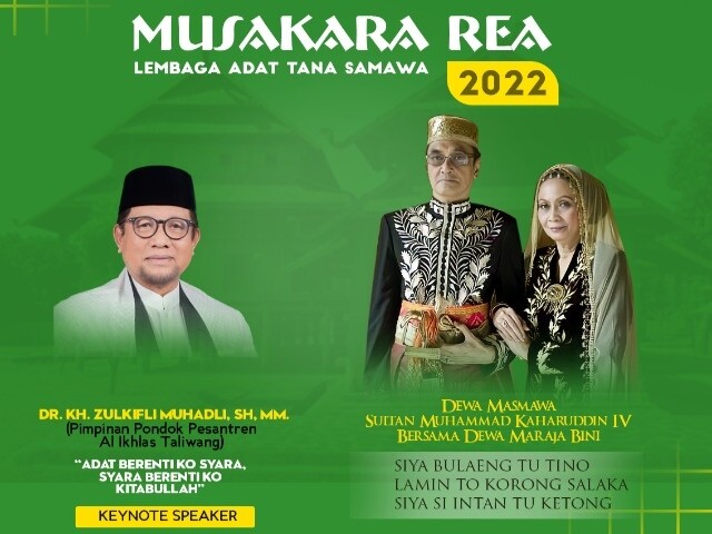 Dalam Acara Musakara Rea 2022 yang akan berlangsung 28-30 Oktober, akan hadir Keynote Speaker dan Para Pemateri sebagai bagian dalam Kegiatan Akbar Tana Samawa. Keynote Speaker dalam Acara Musakara Rea adalah Bapak Dr. K.H. Zulkifli Muhadli, S.H.,MM., dengan Tema : "Adat Barenti ko Syara, Syara Barenti ko Kitabulla".